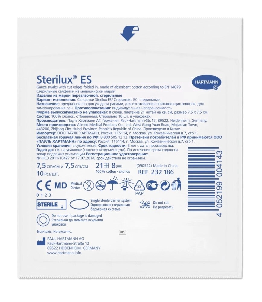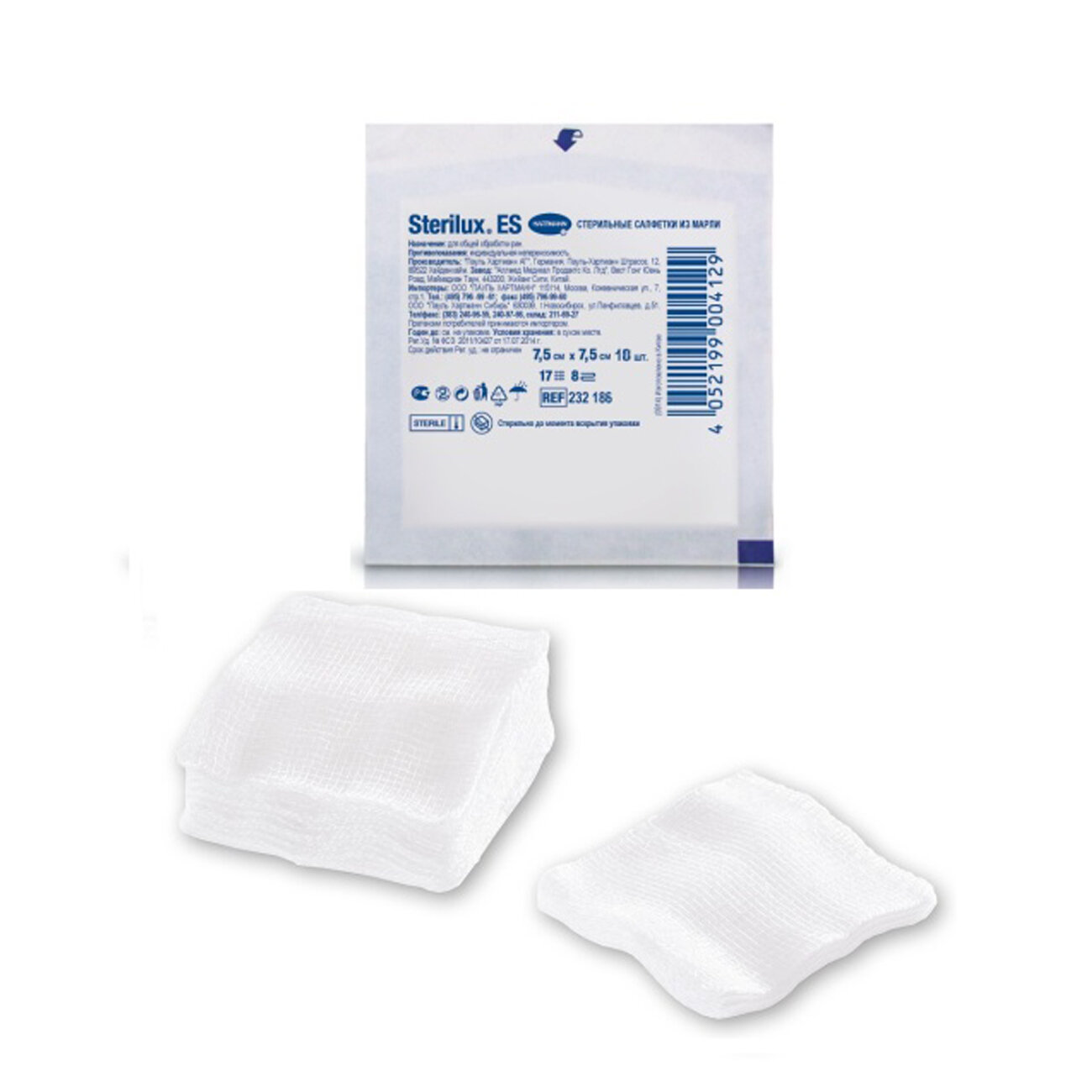 Стерилюкс ЕС салфетки стерильные из мед. марли 21нить 8слоев 75х75см №2x5 Paul Hartmann (124112)