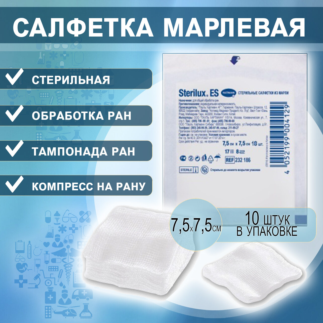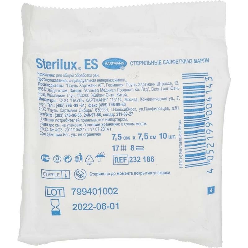 Сервис сравнения цен СкидкаГИД предлагает сравнить цены на товар «Стерилюкс ЕС салфетки стерильные из мед. марли 21нить 8слоев 75х75см №2x5 Paul Hartmann (124112)»