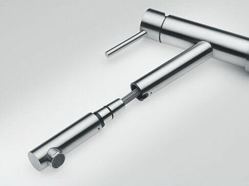 Одной из самых функциональных особенностей современных смесителей является наличие вытяжного утечки, что позволяет значительно облегчить большинство задач в кухне. Длина выносного шланга чуть больше 1 м. С его помощью можно наполнять водой большие емкости (ведра, вазы), которые не помещаются в мойку, или кастрюле, стоящих прямо на варочной поверхности. Также можно тщательнее мыть фрукты или ягоды, или же мойку в труднодоступных местах. Дополнительным удобством является возможность переключения между струей и душем.