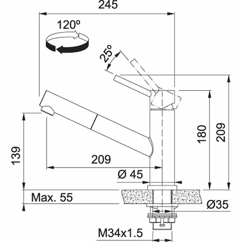 Смеситель Franke Orbit с выдвижным шлангом - стильное и практичное решение для вашей кухни. Изготовленный из высококачественной латуни, он обеспечивает долговечность и надежность. Однорычажное управление упрощает регулировку температуры и напора воды, а выдвижной шланг облегчает процесс наполнения и мытья посуды.