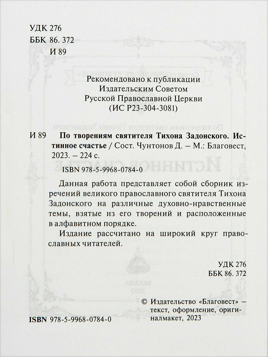 Истина счастья. По творениям святителя Тихона Задонского (Чунтунов Д.С. (составитель)); Благовест, 2023