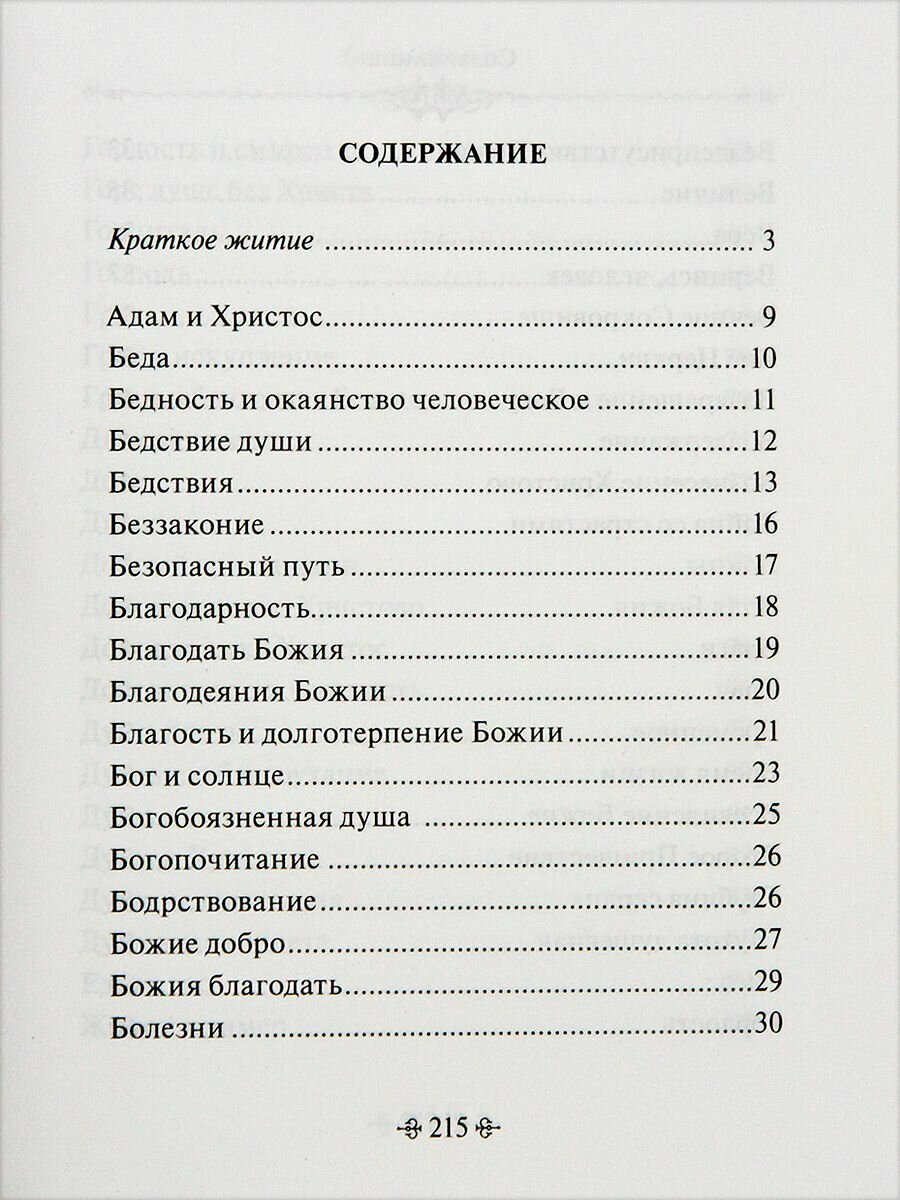 Данная работа представляет собой сборник изречений великого православного святителя Тихона Задонского на различные духовно-нравственные темы, взятые из его творений и расположенные в алфавитном порядке. Издание рассчитано на широкий круг православных читателей.