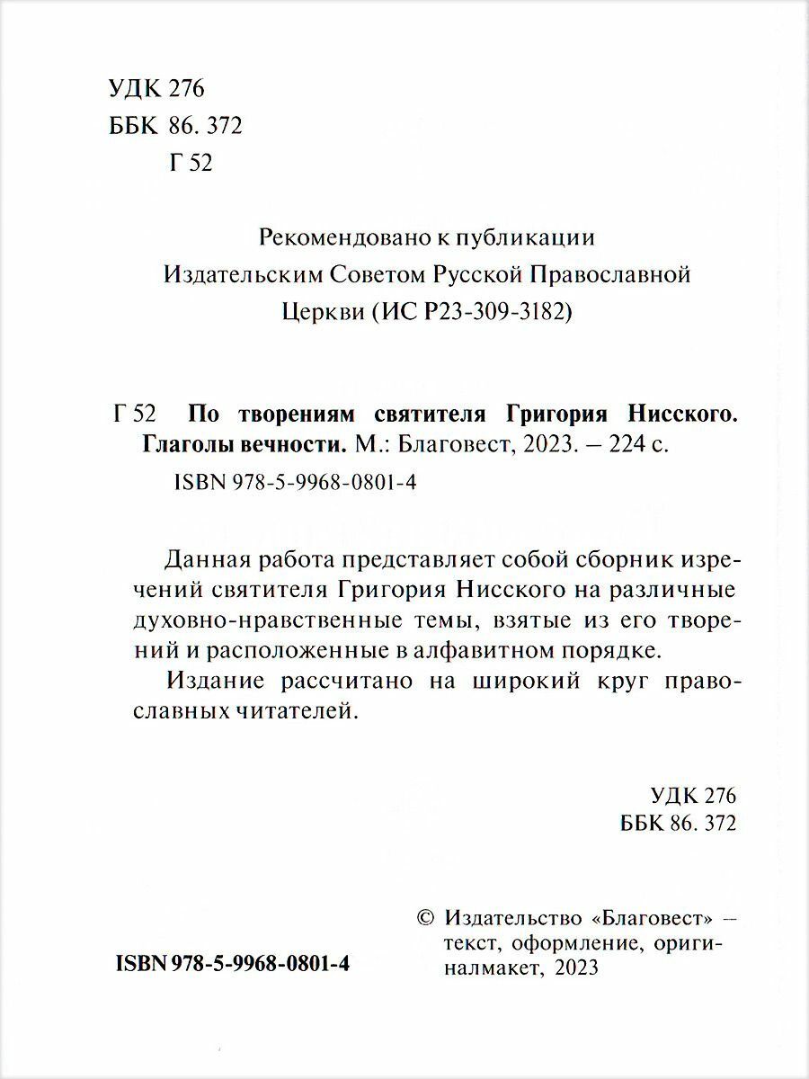 Глаголы вечности. По творениям святителя Григория Нисского (Григорий Нисский Святитель); Благовест, 2023