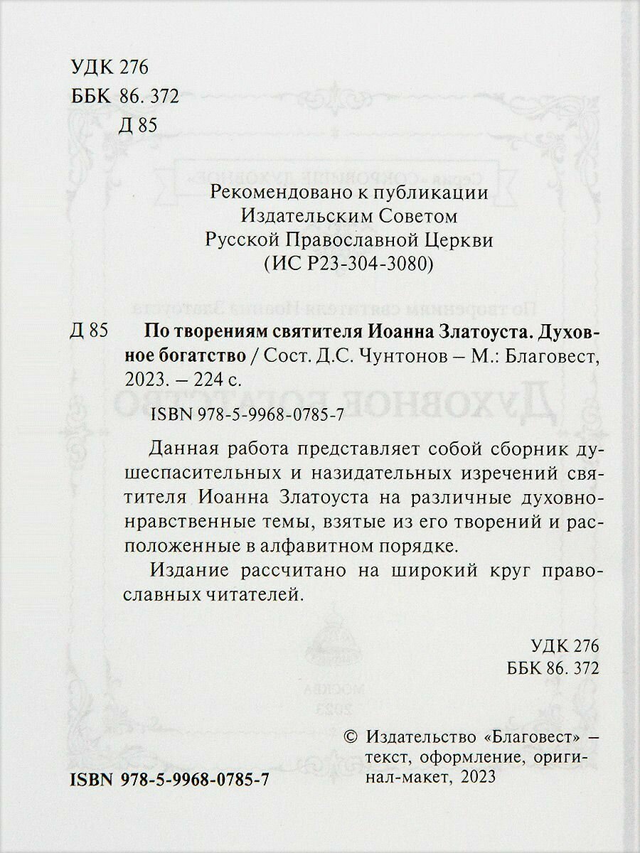 Духовное богатство. По творениям святителя Иоанна Златоуста (Чунтунов Д.С. (составитель)); Благовест, 2023