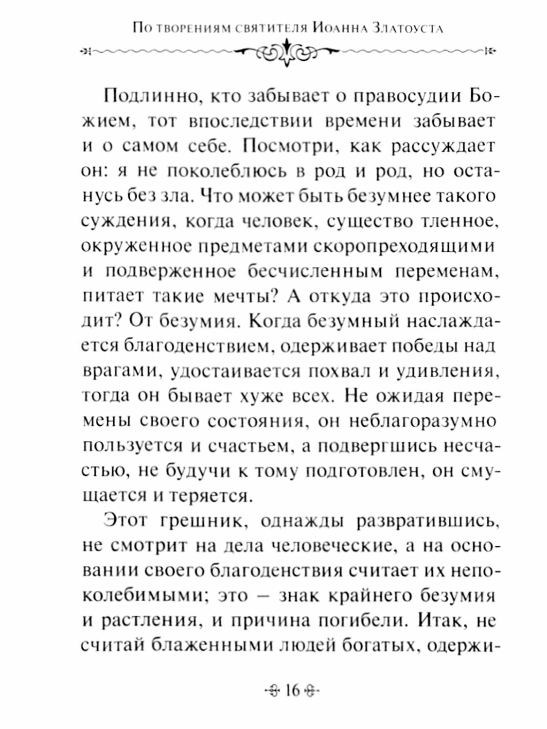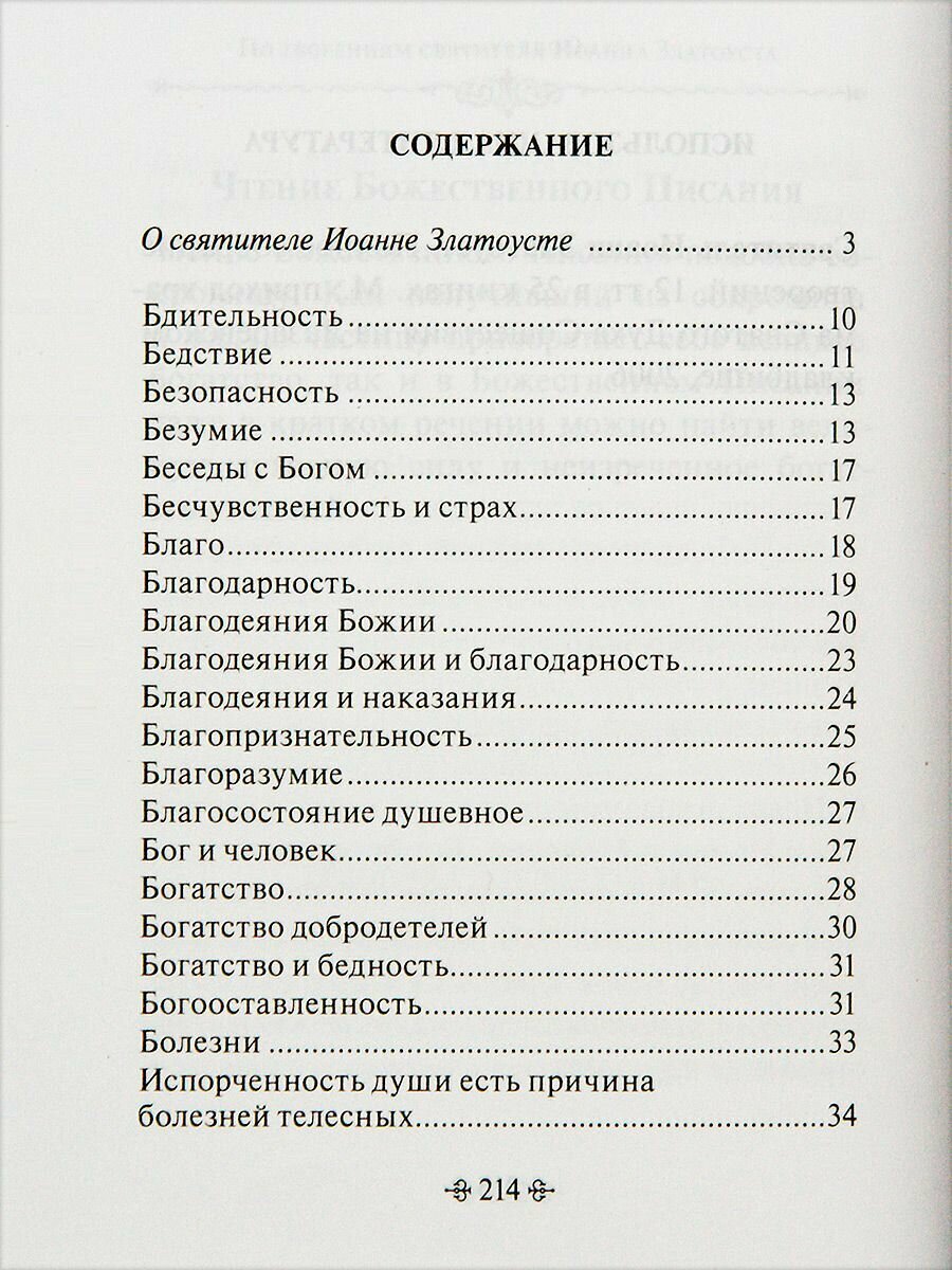 Данная работа представляет собой сборник душеспасительных и назидательных изречений святителя Иоанна Златоуста на различные духовно-нравственные темы, взятые из его творений и расположенные в алфавитном порядке.