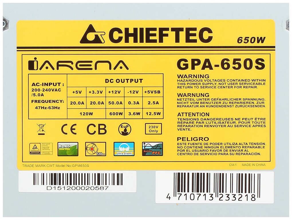 Блок питания Chieftec iArena 650W (GPA-650S) GPA-650S 650W (GPA-650S)