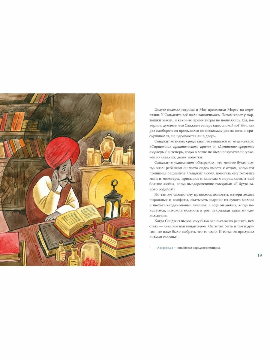 Надеюсь, вам понравятся тигрёнок Мау, его смелая и заботливая мама Чанда и, конечно, изобретательный кондитер Санджит. Он знаком с аюрведой, согласно которой самые обычные кулинарные ингредиенты могут быть лекарством.