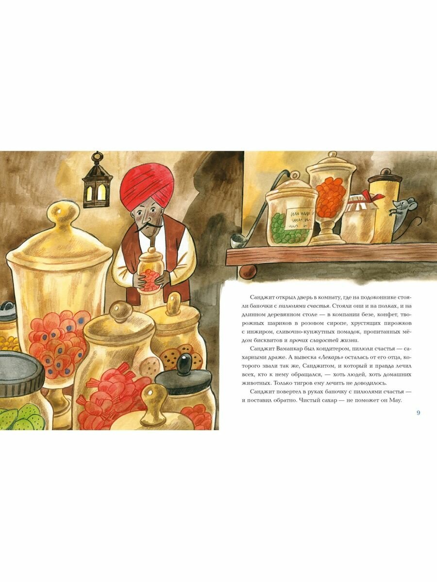 "Лекарь Санджит Ваманкар" - так гласит надпись на доме в маленьком индийском городке. На самом деле Санджит никакой не лекарь - вывеска осталась от отца, а сам он работает кондитером. Но когда на пороге его лавки появляется грозная тигрица и просит лекарство для своего тигрёнка, испуганный Санджит не решается отказать.… А что если приготовить целебный сироп из полезных ингредиентов для сладостей?