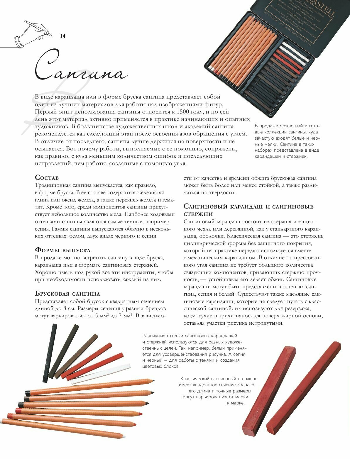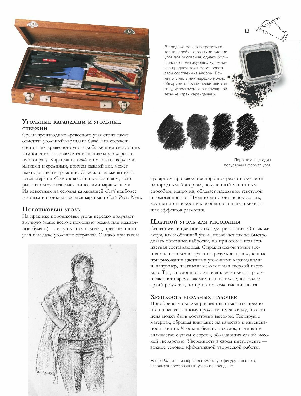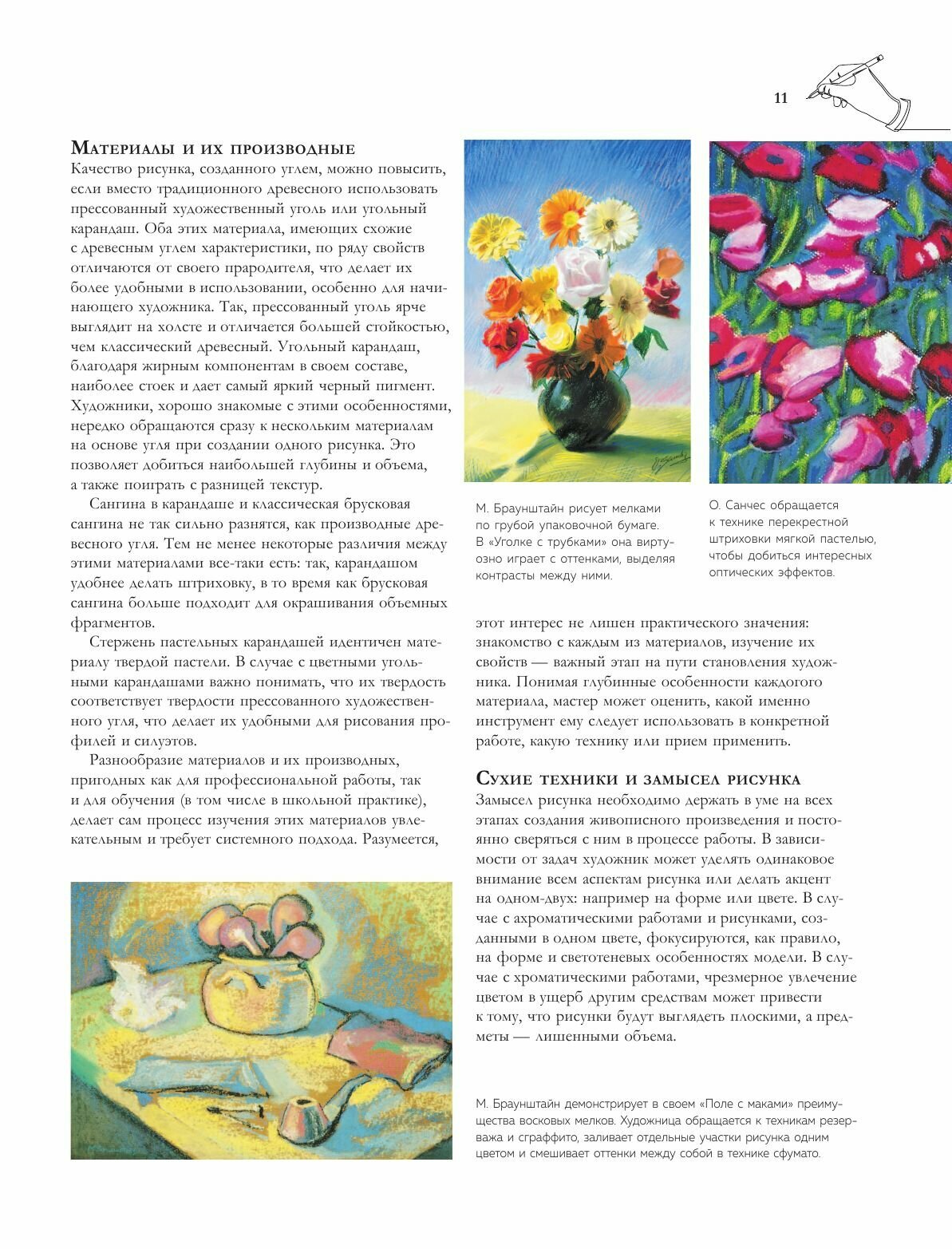 Обожаю подобные издания, из этой книги можно многое узнать о сухой технике рисования, что поможет разнообразить творческий процесс, научиться работе с новыми материалами. Здесь есть пошаговые уроки рисования пастелью, сангиной, углем, карандашами, всё что нужно для графики. Эти техники не требуют больших затрат и подготовки, в них приятно и комфортно работать. А качественные иллюстрации вдохновят на создание собственных шедевров