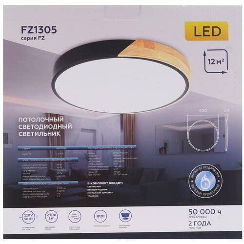 | Номенклатура | FZ1301 WH/LW белый/светлое дерево 45W 5000K D500*50 (без ПДУ) |