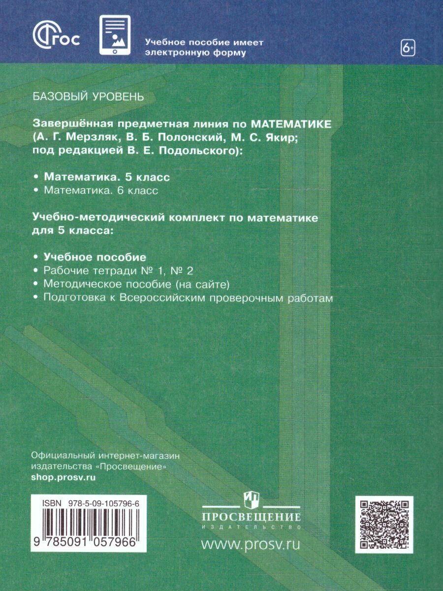 На сегодняшний день товар «Книга: Математика. Базовый уровень. 5 класс. Учебное пособие. ФГОС (Мерзляк Аркадий Григорьевич, Полонский Виталий Борисович, Якир Михаил Семенович); Просвещение/Вентана-Граф, 2023» можно купить с кешбеком в 1 магазине: Яндекс.Маркет