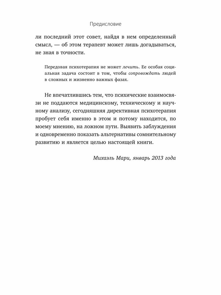 Михаэль Мари фиксирует, что государственный контроль изменил психотерапию. Чтобы иметь возможность сопровождать людей с обычными проблемами или в кризисных ситуациях, теперь необходимо выставить «больному» диагноз и определить систему лечения, которая должна гарантировать результат.
