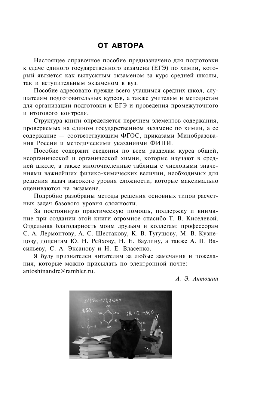 Пособие содержит сведения по всем разделам курса общей, неорганической и органической химии, которые изучают в школе, а также многочисленные таблицы с числовыми значениями важнейших физико-химических величин, необходимых для решения задач высокого уровня сложности.