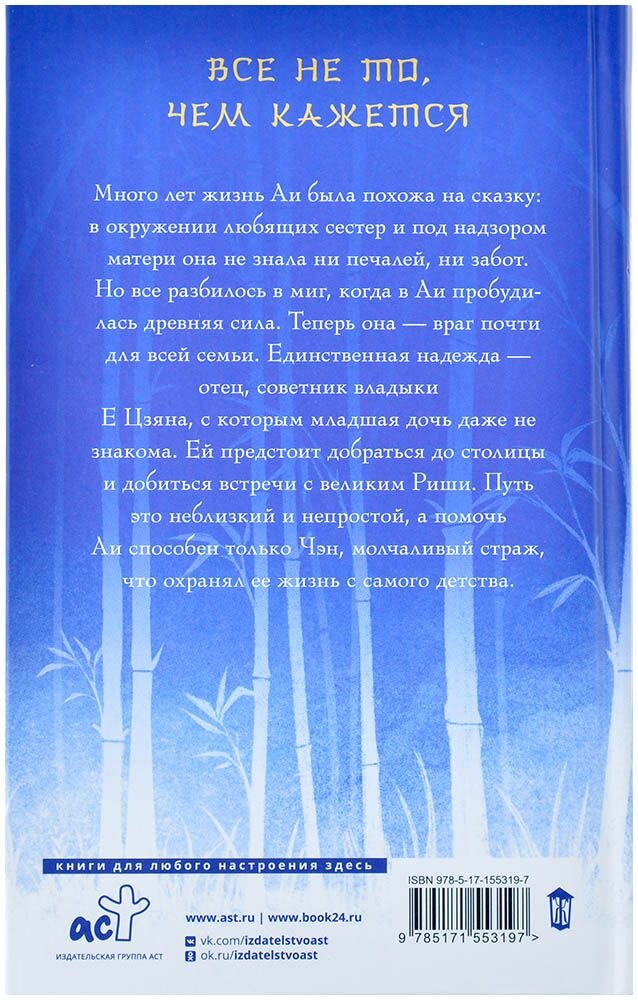 Качественный ромфант в азиатском стиле. Здесь нет ничего эпического, масштабного, зато автор создала уютную атмосферу с приключениями и романтикой. Как и другие книги автора, эта с особенностью: первые ~20 страниц не понимаешь что к чему и особого интереса не испытываешь, но стоит преодолеть этот рубеж, и от книги уже не оторваться. Читала и просто душой отдыхала. Ещё очень понравилось оформление обложки и форзацев, такие они невесомые и нежные и гармонируют друг с другом.