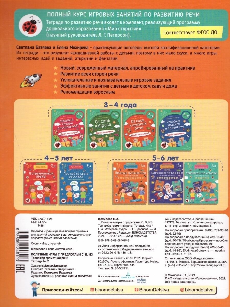 Полезные игры с предлогами С В ИЗ. Тренажер грамотной речи. Тетрадь 2 (Мохирева Елена Анатольевна); Просвещение, 2023
