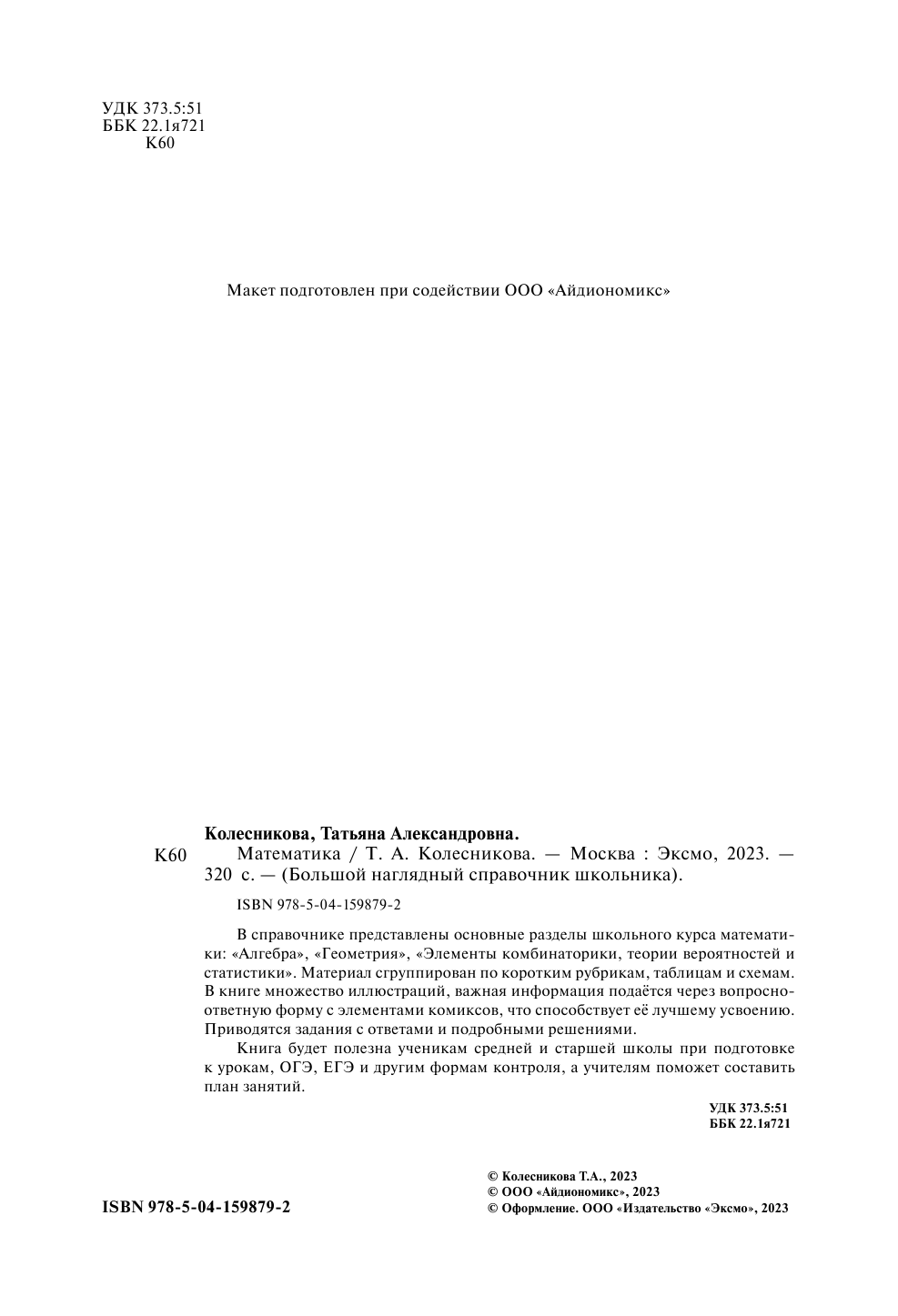 Книга: Математика (Колесникова Татьяна Александровна); ООО "Издательство "Эксмо", 2023