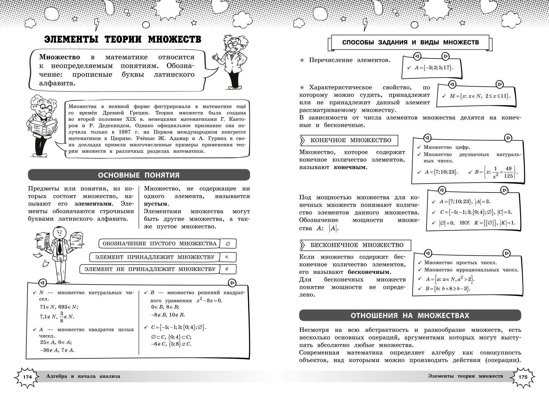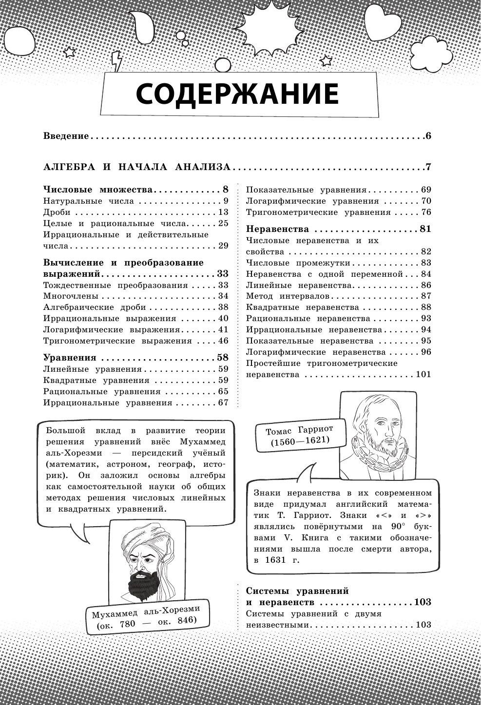 Спасибо, что есть эта книга! Замаячившие впереди экзамены из трех букв - это дикий стресс для всей семьи! Непонятно, за что хвататься, что повторять, какие темы нужно срочно подтягивать... С этой книгой ужас и хаос превращаются в конкретный список задач. Потому что в ней собраны темы с 8 по 11 класс, знание которых для успешной сдачи ЕГЭ обязательно. И можно спокойно, без суеты, проводить "аудит" программы, чтобы определить - что понятно, что непонятно, где белые пятна и черные дыры, на чем нужно будет делать упор и с каким запросом идти к репетитору, если он все же понадобится. Объяснения здесь хорошие, понятные, если в математике нет реального провала, вполне можно разобраться самостоятельно. В общем, мы приободрились!