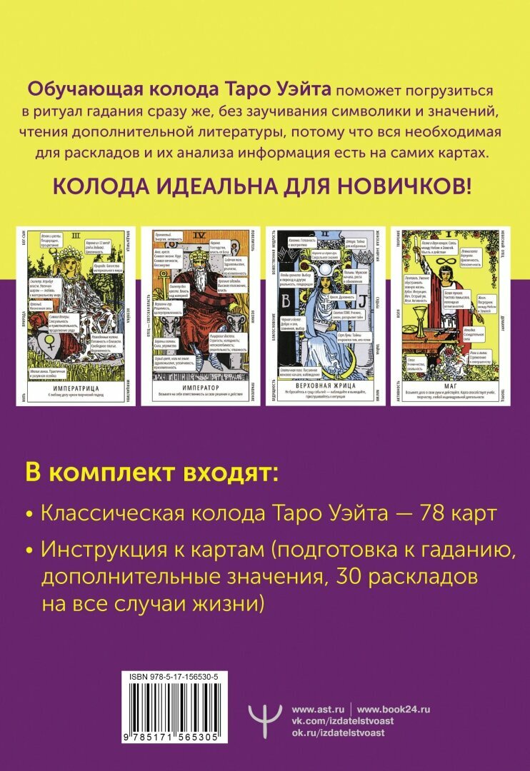 Таро Уэйта. Обучающая колода с подсказками на каждой карте (Новак-Петроф Франц); ООО "Издательство Астрель", 2023