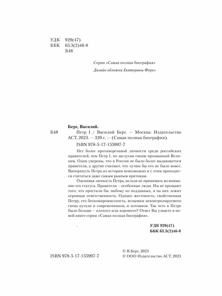 Книга: Петр I (Василий Берг); Издательство АСТ, 2023