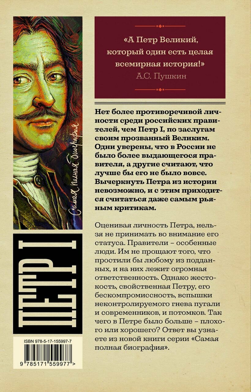 Оценивая личность Петра, нельзя не принимать во внимание его статуса. Правители - особенные люди. Им не прощают того, что простили бы любому из подданных, и на них лежит огромная ответственность. Однако жестокость, свойственная Петру, его бескомпромиссность, вспышки неконтролируемого гнева пугали и современников, и потомков. Так чего в Петре было больше - плохого или хорошего? Ответ Вы узнаете в новой книге серии "Самая полная биография".