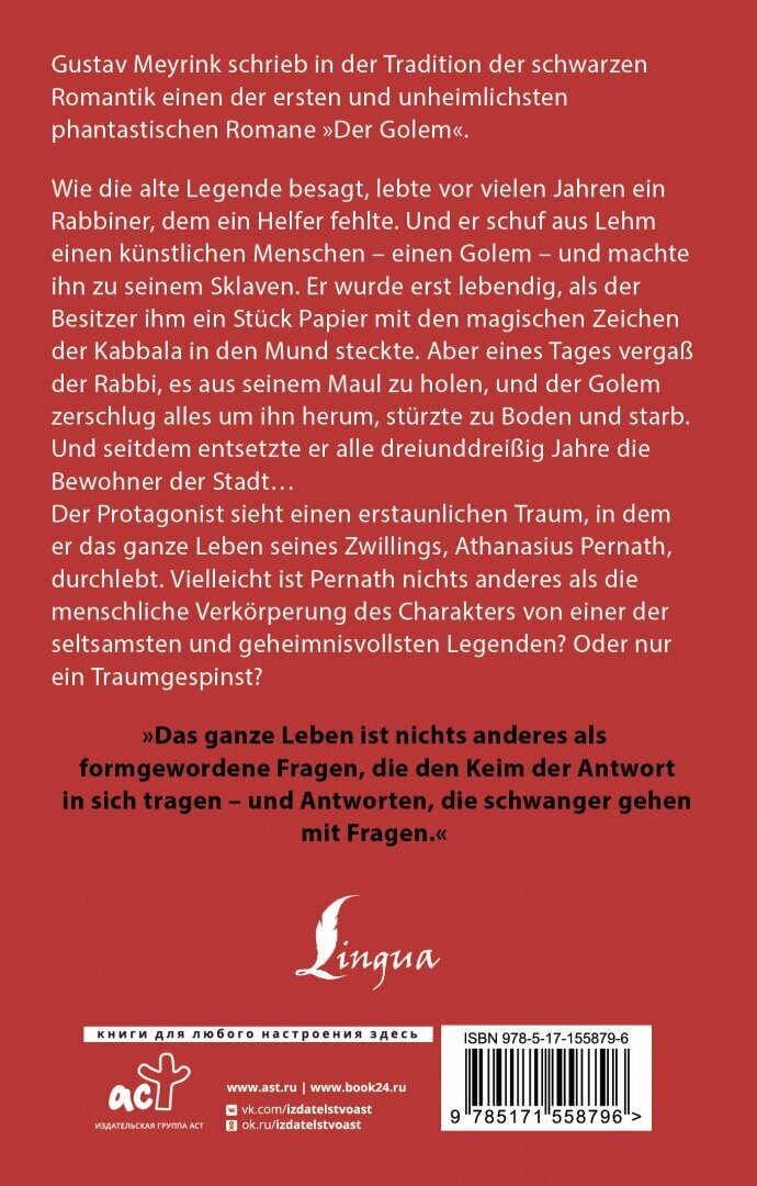 Книга: Der Golem / Голем (Густав Майринк); Издательство АСТ, 1914
