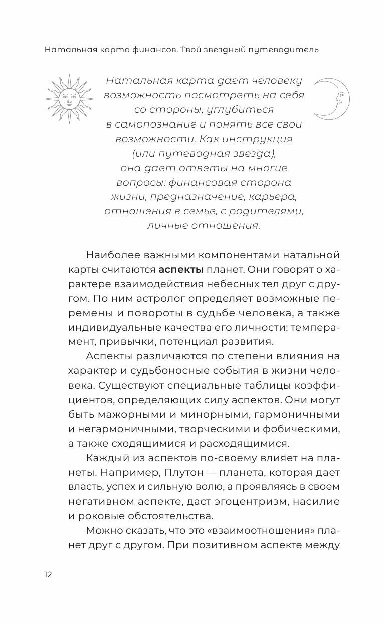 Прочитав эту книгу, вы узнаете, как с помощью астрологии выбрать направление, сферу или профессию, которые будут приносить стабильный и большой доход. Подберёте подходящую вам структуру и методы ведения бизнеса. Преодолеете внутренние и внешние ограничения, которые мешают вам выйти на новый финансовый уровень. А ещё - научитесь строить и читать натальную карту и использовать все её подсказки.