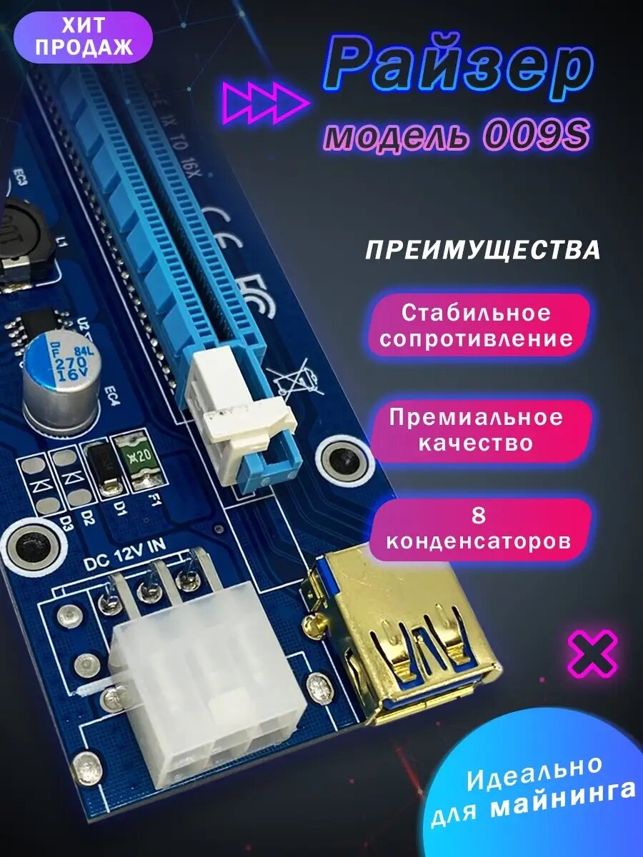 - Переходник райзер PCI E для майнинга Riser PCI E x1 to x16 USB 3.0 ТОП КАЧЕСТВО райзер molex