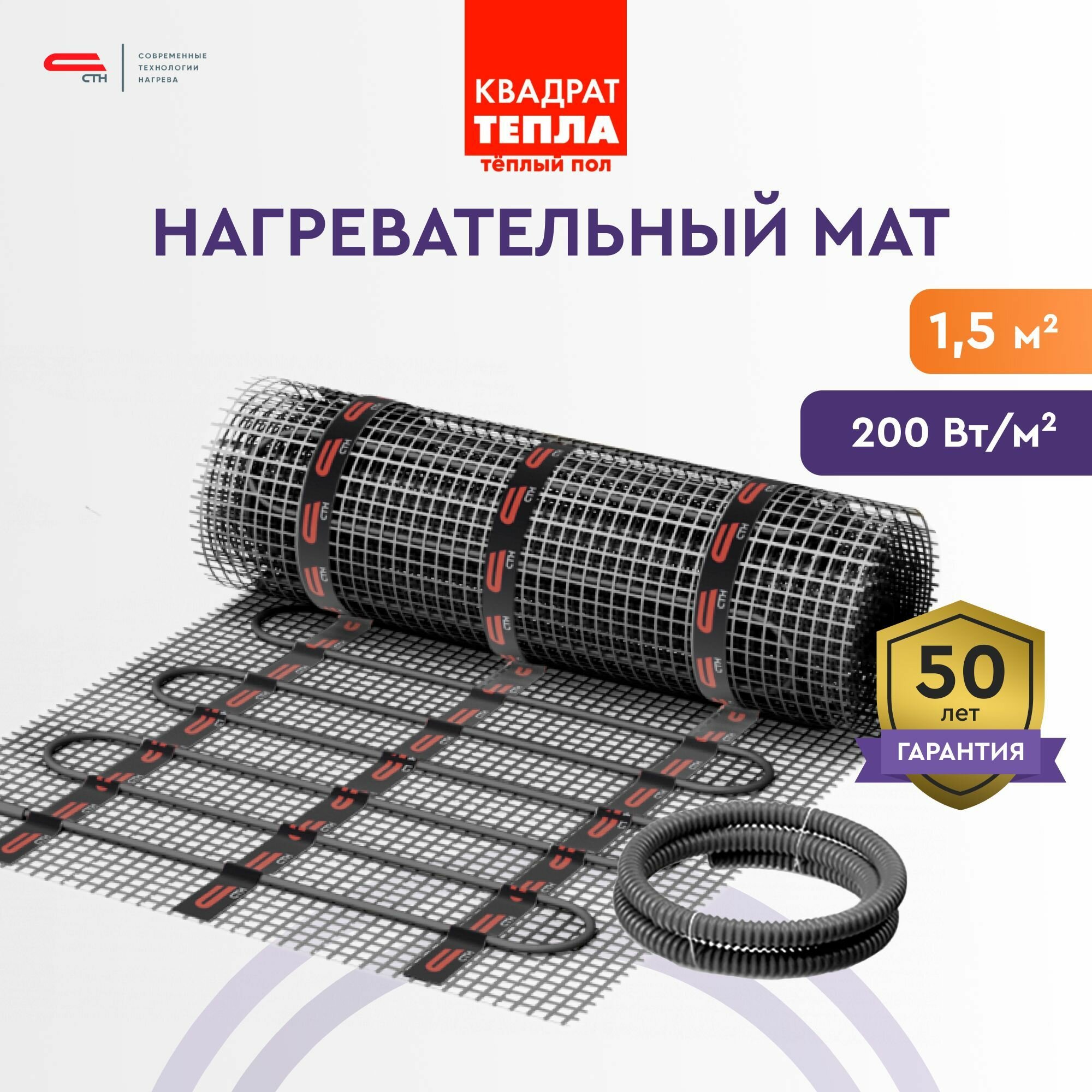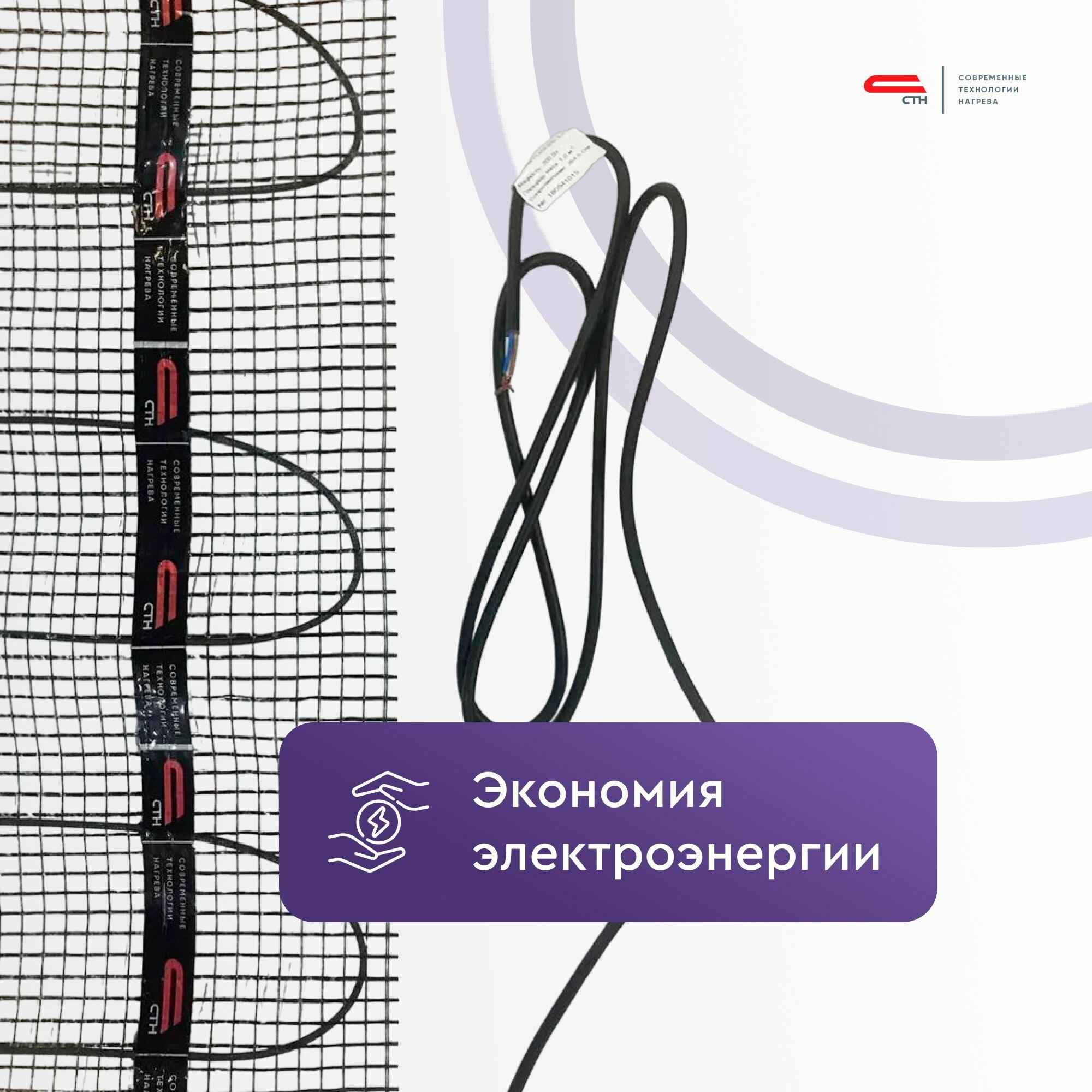 Нагревательный мат СТН отличается универсальным монтажом и может использоваться для обогрева пола из плитки, паркета, ламината или линолеума. Изделие не повышает уровень пола и отличается пониженной пожароопасности. Данный комплект рассчитан на площадь 5 квадратных метров.
