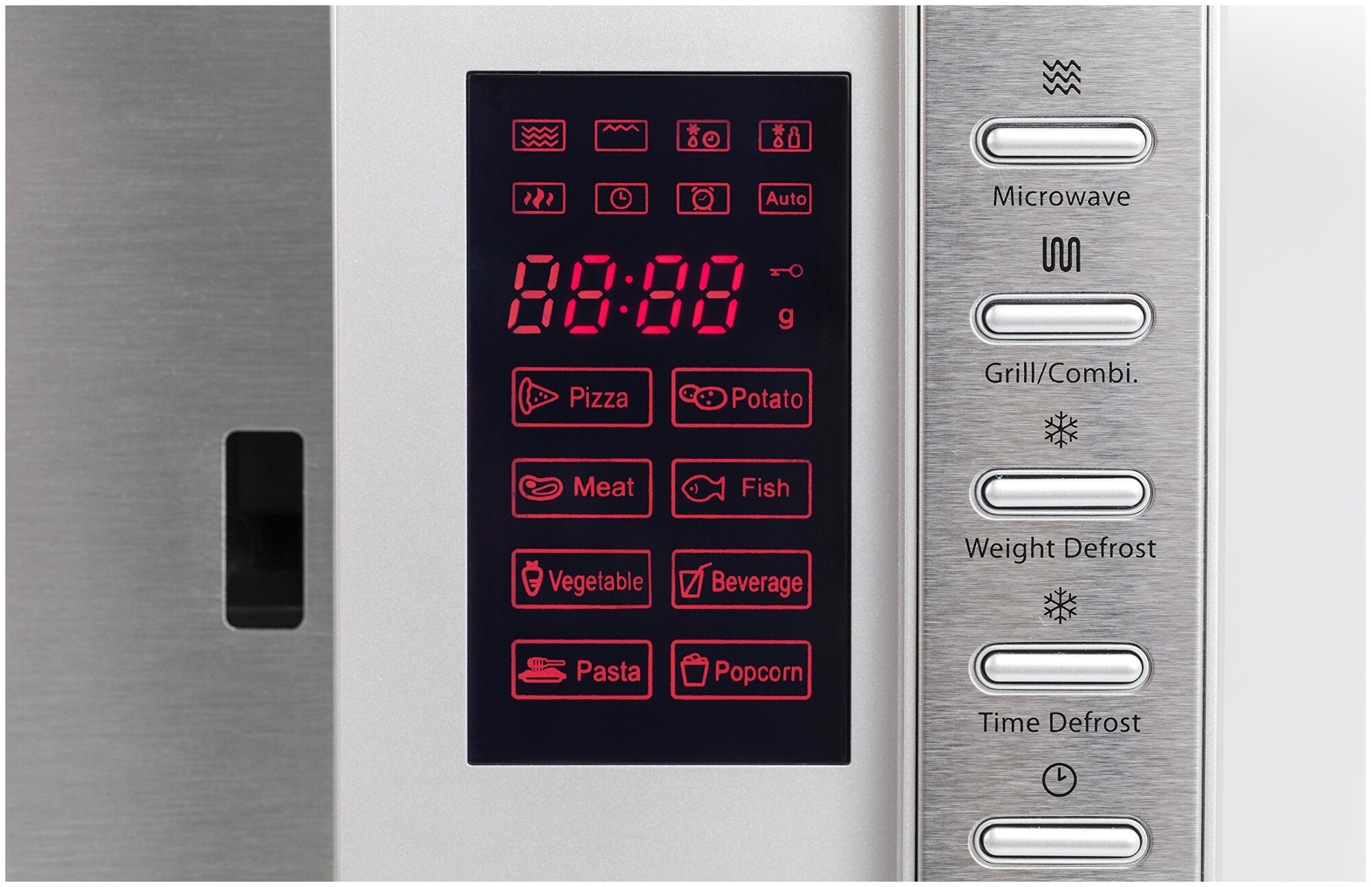 Микроволновая печь с грилем Caso SMG 20 – это непревзойдённое сочетание элегантного дизайна и высоких технологий. Корпус из нержавеющей стали в сочетании с зеркальной передней панелью делает её настоящим украшением кухонного интерьера, а также значительно облегчает очистку, поскольку не допускает появления стойких пятен. автоматические программы С Caso SMG 20 шеф-поваром может стать даже человек, никогда раньше не сталкивавшийся с готовкой.