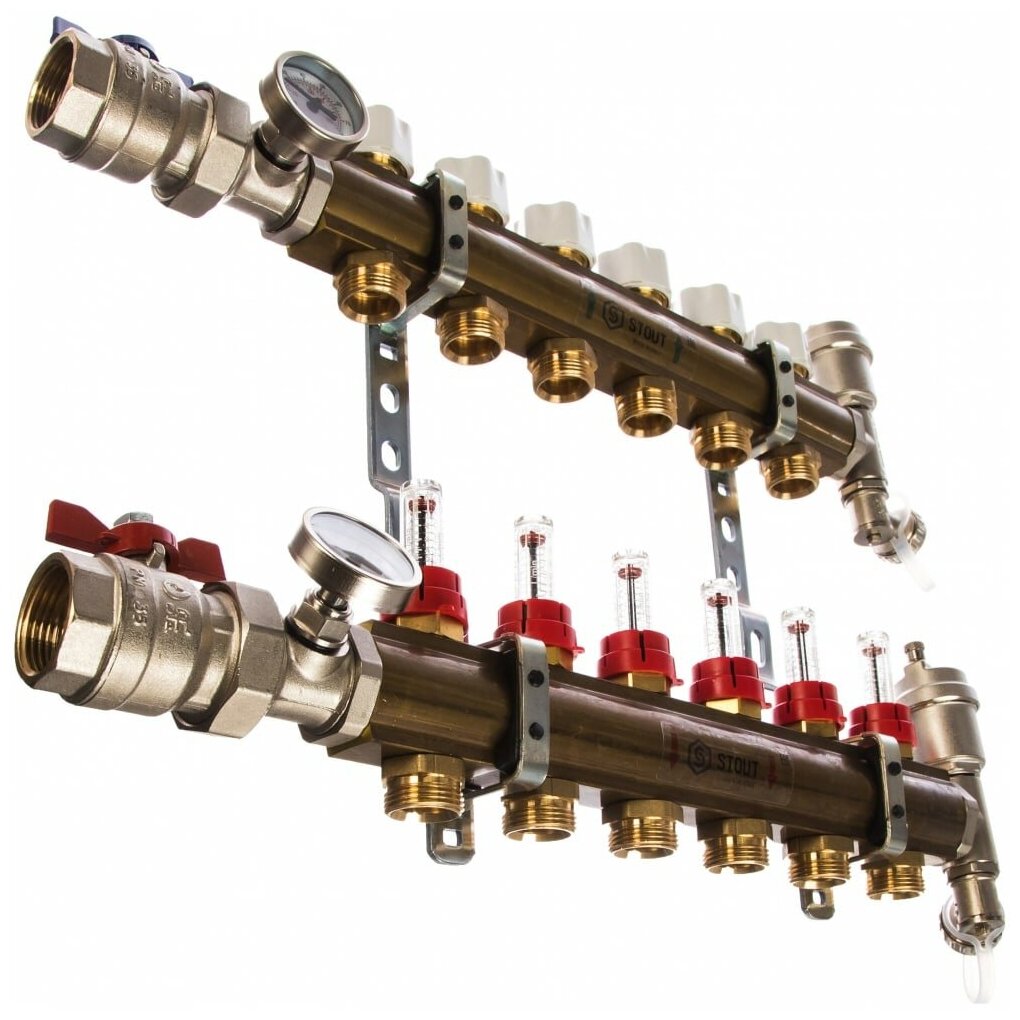 Коллектор регулируемый для теплого пола с расходомерами Stout »