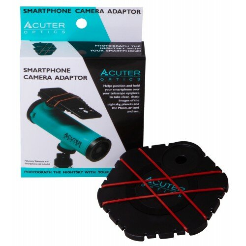 Адаптер ACUTER – это аксессуар для телескопа, который позволяет закреплять на окуляре смартфон. В этом случае становится возможным использовать встроенную в телефон камеру для астрофотографии. Адаптер можно фиксировать на окулярах диаметром до 34 мм.Смартфон крепится к адаптеру при помощи эластичных лент, которые надежно удерживают его в одном положении. В свою очередь, адаптер фиксируется на окуляре двумя небольшими винтами.Основные особенности: Совместим со смартфонами любых марок Крепится на окуляре телескопа Не предназначен для установки на зрительные трубы, монокуляры, микроскопы и биноклиТехнические характеристики Назначение крепление смартфона к телескопу Диаметр совместимого окуляра, мм до 34 Тип крепления регулируемое Материал пластик