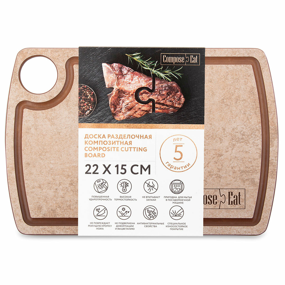 Доска разделочная с желобом ComposeEat 22х15см порфир кремовый (DRJ22150433KL6) (размер: 15х20 см)