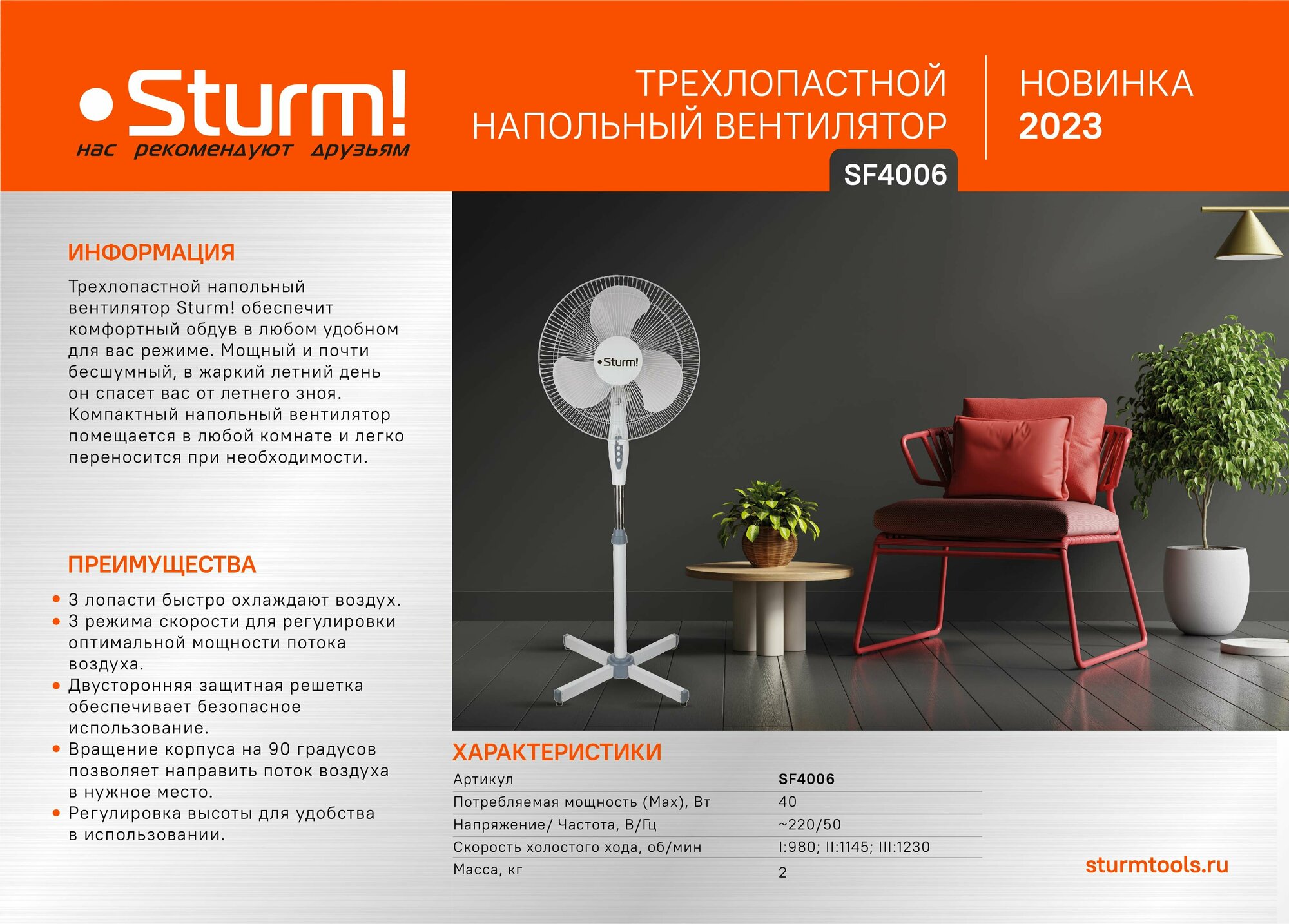 Сервис сравнения цен СкидкаГИД предлагает сравнить цены на товар «Вентилятор напольный STURM! SF4006 40Вт»
