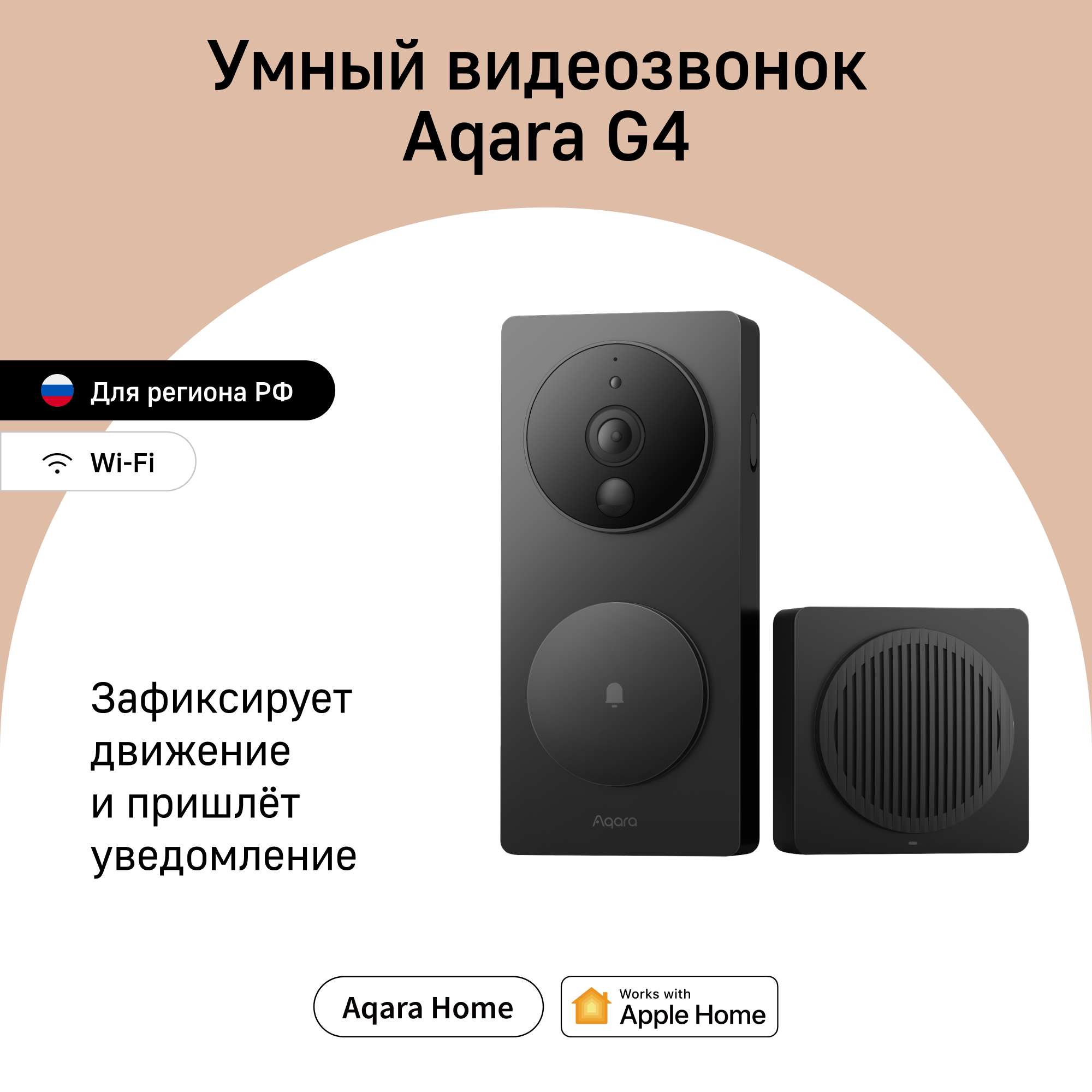 | Видеозвонок G4 Aqara состоит из двух модулей | наружного и внутреннего. На наружном установлена камера, кнопка звонка и датчики движения. А также в него встроен динамик и микрофон. |