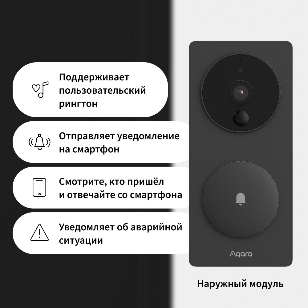 Видеозвонок Aqara Smart Video Doorbell G4 черный, поддержка карт памяти microSD (SVD-KIT1)