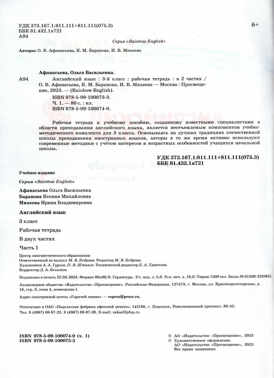 Английский язык. 3 класс. Рабочая тетрадь. В 2-х частях (Афанасьева Ольга Васильевна, Михеева Ирина Владимировна, Баранова Ксения Михайловна); Просвещение, 2023