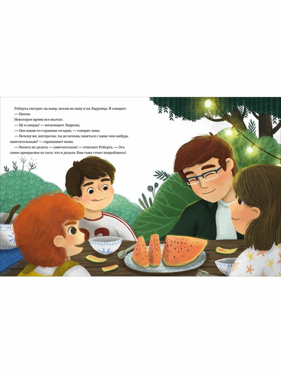 Однако это непросто! Мама, папа и брат считают, что лучше Роберты знают, что ей делать, пока кто-то играет в футбол, а кто-то косит траву. И как потом провести время всем вместе. Но Роберта уверена: её прекрасный день должен быть таким, каким она его задумала, и никаким иным. В конце концов, так же начинают думать и все остальные!
