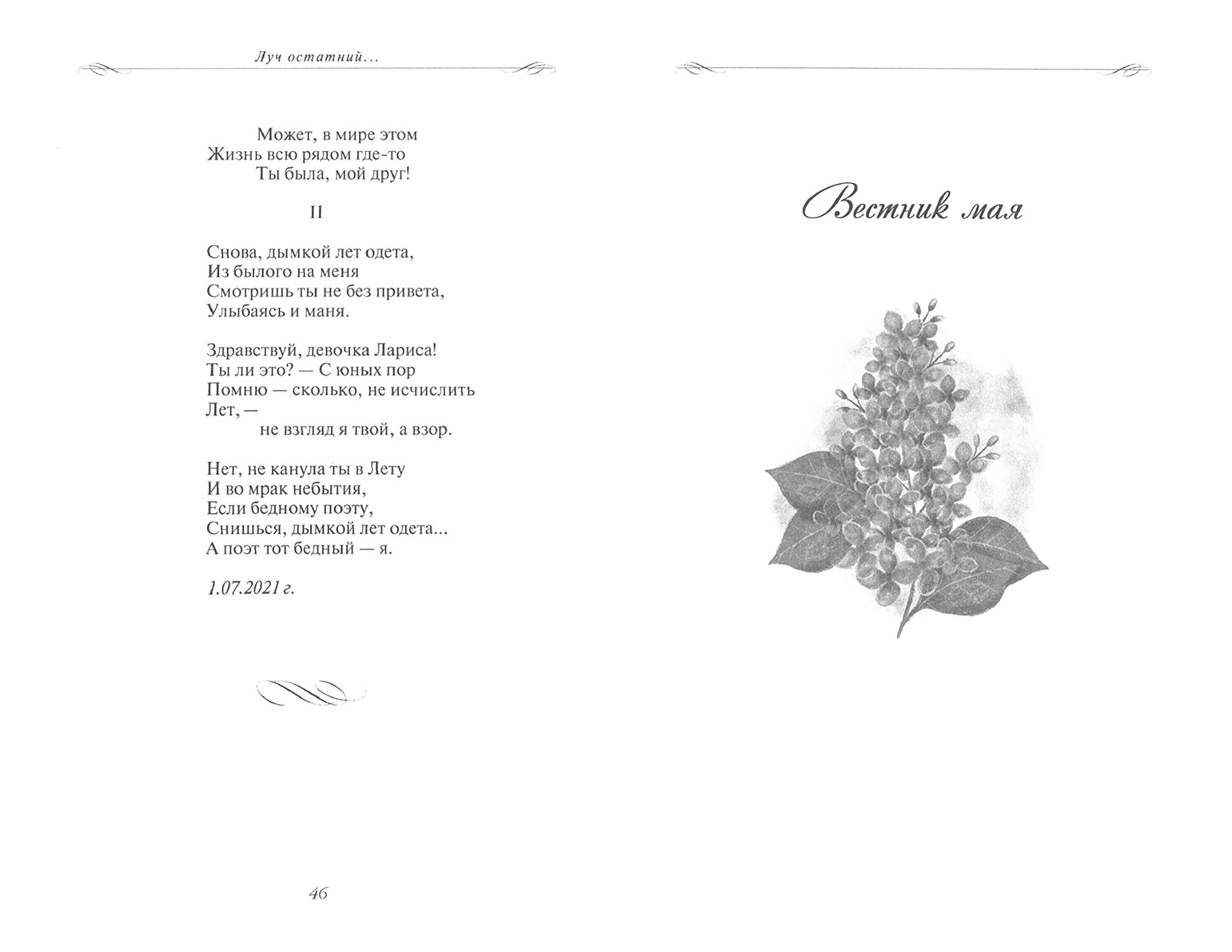 История любви Сергея к Ларисе удивительна! В его творчестве ни грамма фальши. Поздравляю с очередным желанным сборником и желаю ещё многих книг, счастья, и многих юбилейных дат в личной жизни! -