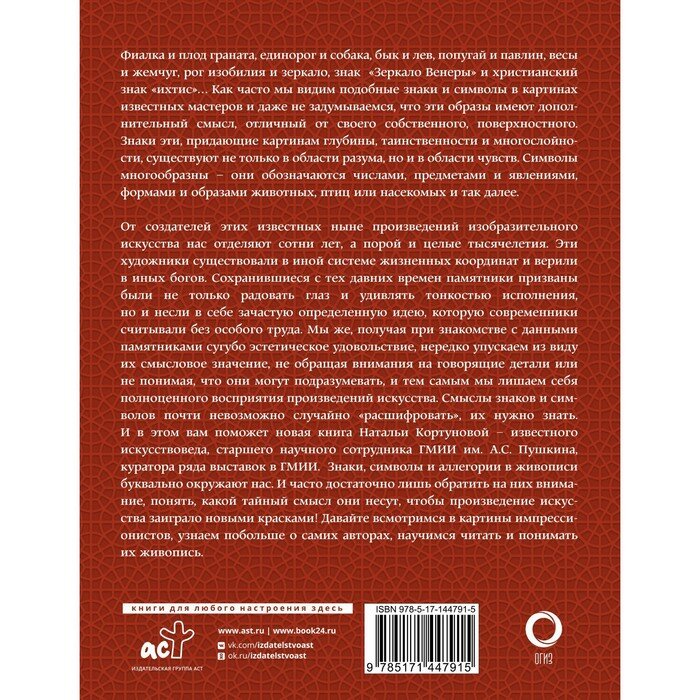 Знаки символы и аллегории в искусстве. Как понимать и разбираться (Кортунова Наталья Дмитриевна); АСТ, ОГИЗ, 2023