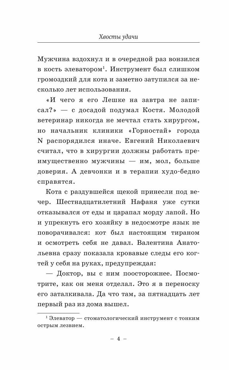 Совершенно милая и добрая книжная история о ветеринарном враче Константине. Как у обычного человека, у доктора (и у доктора для животных) бывают неприятности дома, в личной жизни, но у него всегда есть те, кому он нужен. Нужен, может помочь и спасти - братья наши меньшие, наши четвероногие друзья. Работа нелёгкая, требующая не только профессионализма, но души и терпения. Приятно читать о таких людях.