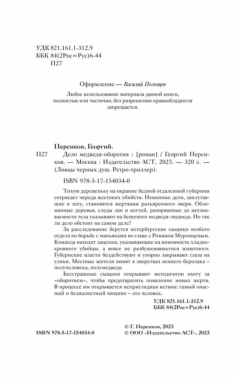 Ловцы черных душ. Дело медведя-оборотня (Георгий Персиков); Издательство АСТ, 2023