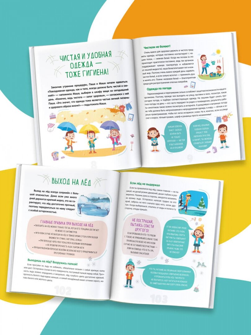 В этой книге информация дана структурировано и понятно, имеются иллюстрации. Можно обсуждать ситуацию с ребенком до прочтения по картинке, а потом читать авторский текст. В итоге получится что-то наподобие анализа ситуации и вывода. Это отлично откладывается в памяти, ведь кому-то проще пользоваться визуальной памятью.