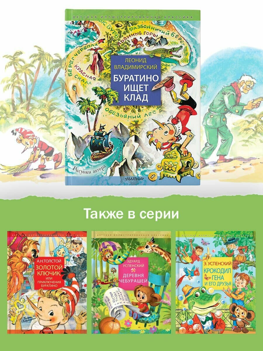 Давным-давно Леонид Владимирский нарисовал Буратино именно таким, каким мы привыкли его видеть - озорным мальчишкой в полосатом колпачке. Художнику настолько полюбился этот герой, что он сам стал сочинять дальнейшие приключения Буратино. Написал и нарисовал целую книжку. Теперь она перед вами.