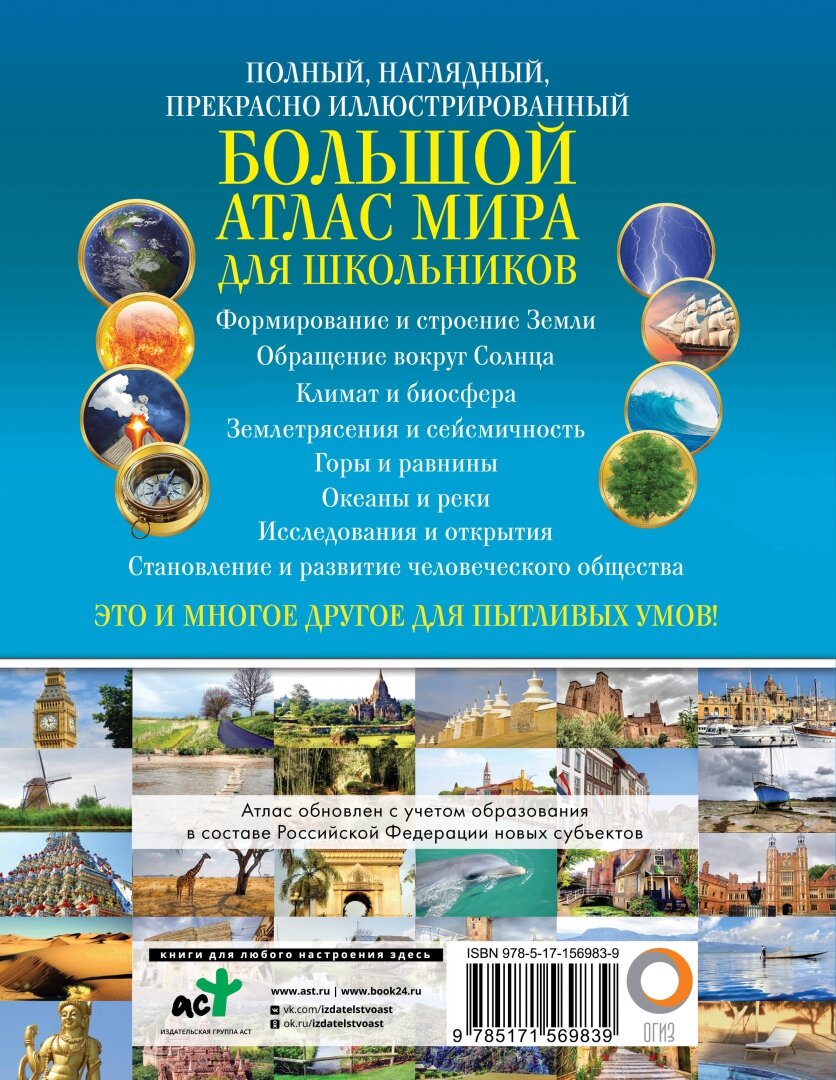 Сервис сравнения цен СкидкаГИД предлагает сравнить цены на товар «Книга: Большой атлас мира для школьников 2023 (в новых границах) (Группа авторов); Издательство АСТ, 2023»