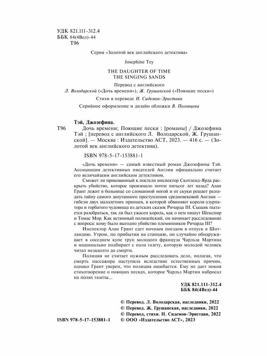 Дочь времени. Поющие пески (Джозефина Тэй); АСТ, 2023