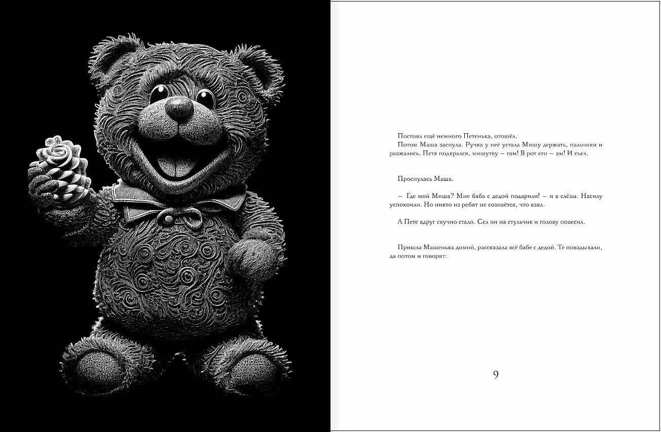Книгу заказала. Потом посмотрела презентацию и она мне не понравилась, мало букв, много картинок. Хотела отказаться, но взяв её в руки и полистав странички, решила всё же взять. Великолепные иллюстрации, прекрасная бумага. Книгу приятно брать в руки и листать рассматривая картинки. Сказки жутковатые, читать маленьким детям я бы не советовала. Хотела книгу с чудесными картинками, что ж я её получила.