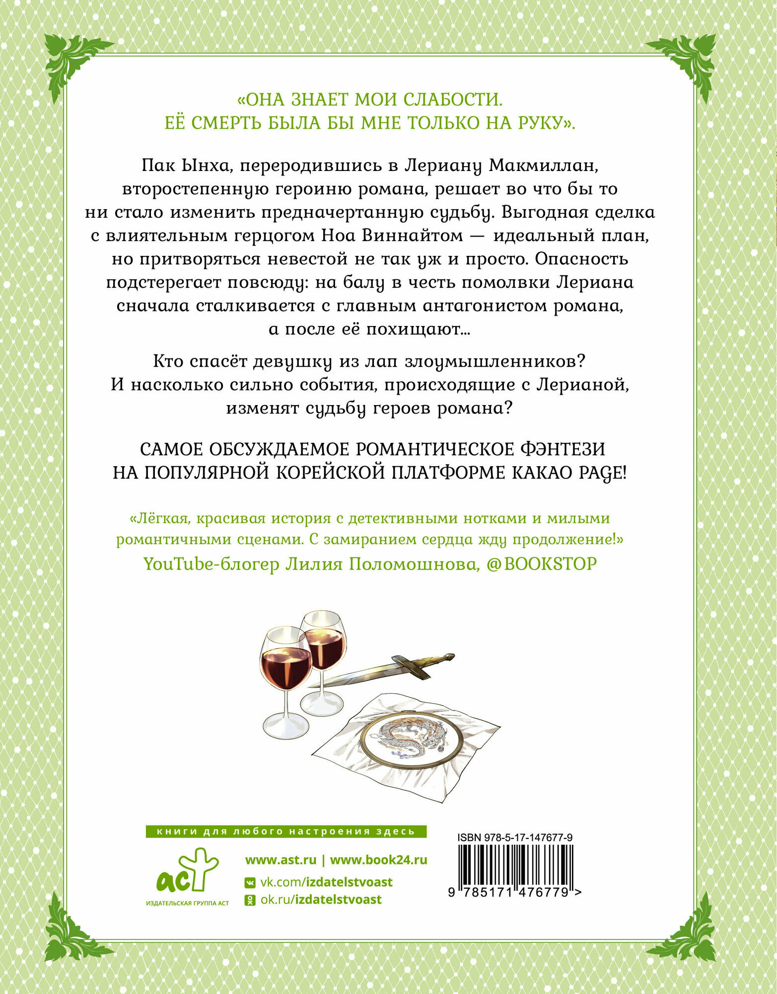 Пак Ынха, переродившись в Лериану Макмиллан, второстепенную героиню романа, решает во что бы то ни стало изменить предначертанную судьбу. Выгодная сделка с влиятельным герцогом Ноа Виннайтом — идеальный план, но притворяться невестой не так уж и просто. Опасность подстерегает повсюду — на балу в честь помолвки Лериана сначала сталкивается с главным антагонистом романа, а после её похищают…