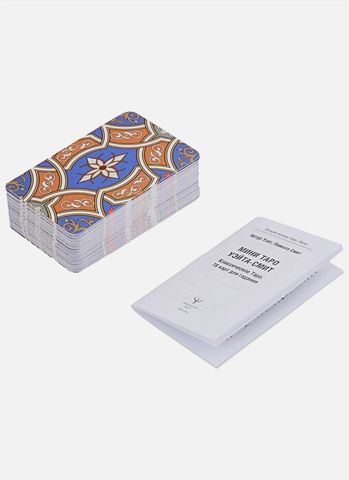 «Мини Таро Уэйта-Смит» — уникальный проводник мудрости в новом исполнении. Карты небольшого, удобного формата размером с кредитную карточку. Их удобно держать в руках, брать с собой в дорогу и использовать в качестве дополнения к основной колоде во время гадания.
