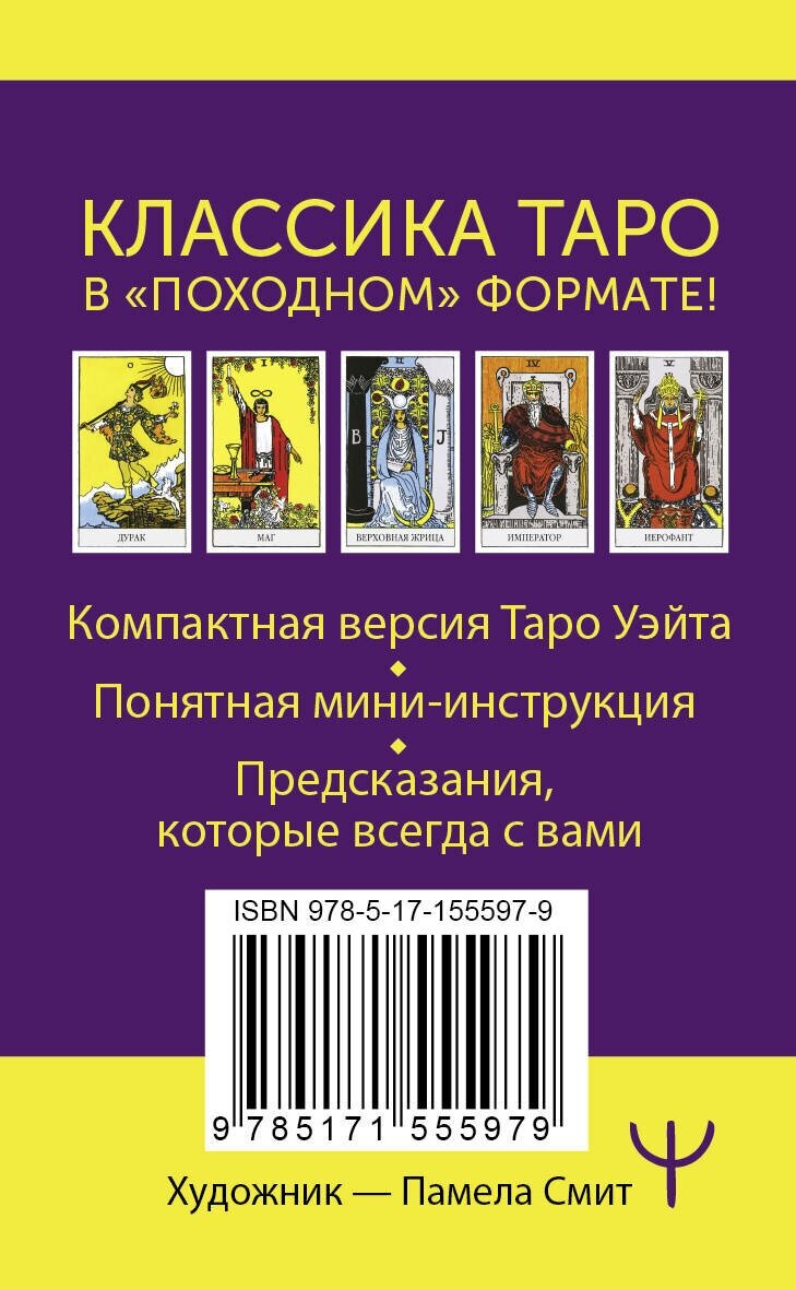 На сегодняшний день товар «Книга: Мини Таро Уэйта-Смит. Классическое таро. 78 карт для гадания (Смит Памела Колеман, Памела Смит); ООО "Издательство Астрель", 2023» можно купить с кешбеком в 3 магазинах: book24, Буквоед, Читай-город