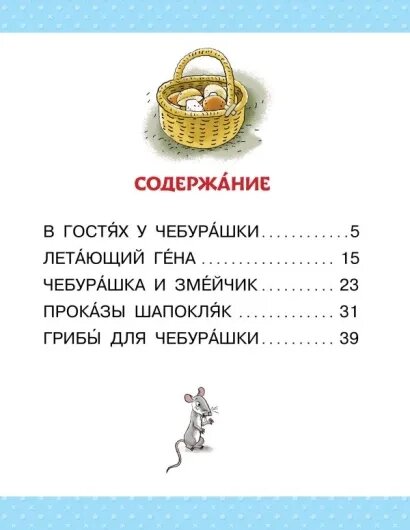 В книгу «Маленькие истории про Чебурашку» Эдуарда Успенского вошли самые коротенькие произведения про двух неразлучных друзей – Чебурашку и крокодила Гену. Этот сборник сказочных истории предназначен для самостоятельного чтения. Это очень важный этап развития речи ребёнка. От того, насколько комфортно произойдёт переход от слушателя к читателю, будет зависеть быстрота чтения, понимание прочитанного и любовь к книгам. Начинать читать самостоятельно лучше по уже знакомым произведениям, которые дети уже слышали в раннем детстве. Поэтому уже знакомые каждому ребёнку с раннего детства сказочные истории про Чебурашку и крокодила Гену отлично подходят для самостоятельного чтения! В книге крупный шрифт и слова с ударениями.